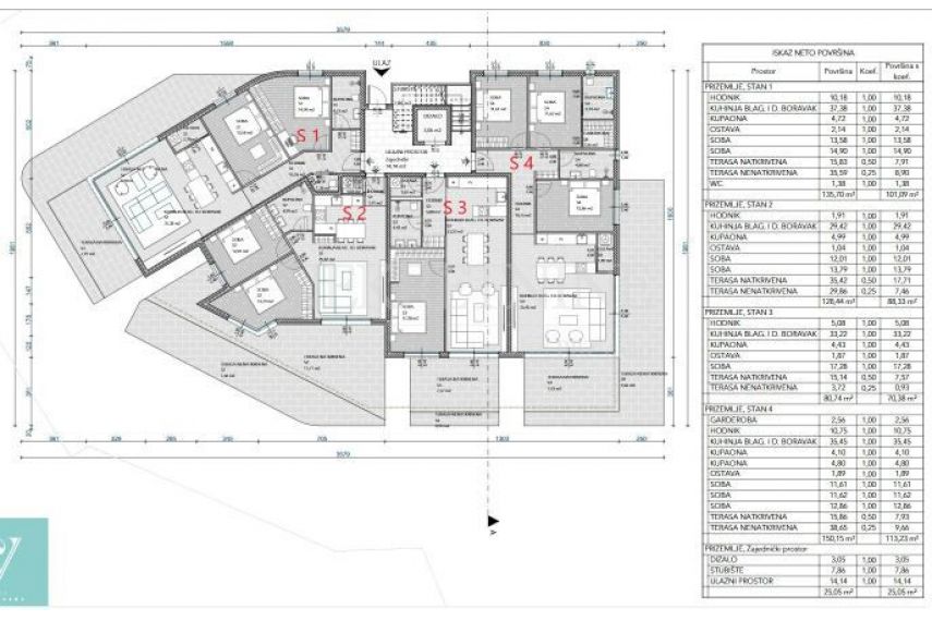 Stan se nalazi u prizemlju objekta,oznake S3, ukupne površine (sa spremištem) 71,93 m2