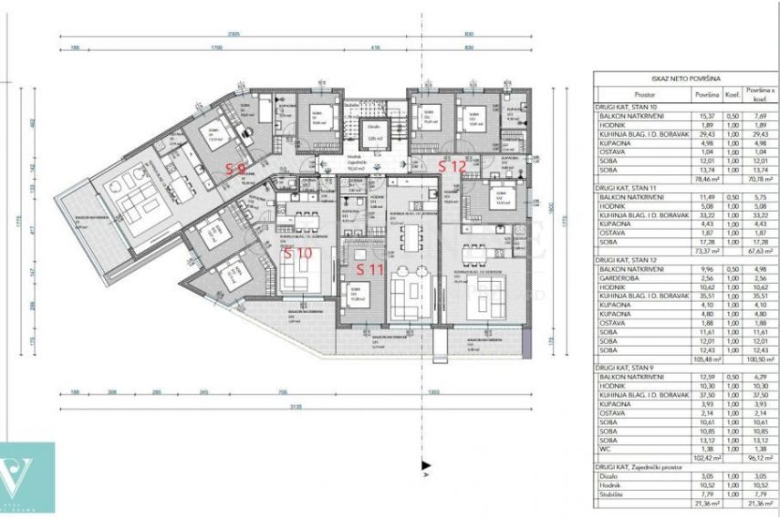 Stan se nalazi na 2.katu objekta,oznake S9, ukupne površine (sa spremištem) 94,63 m2